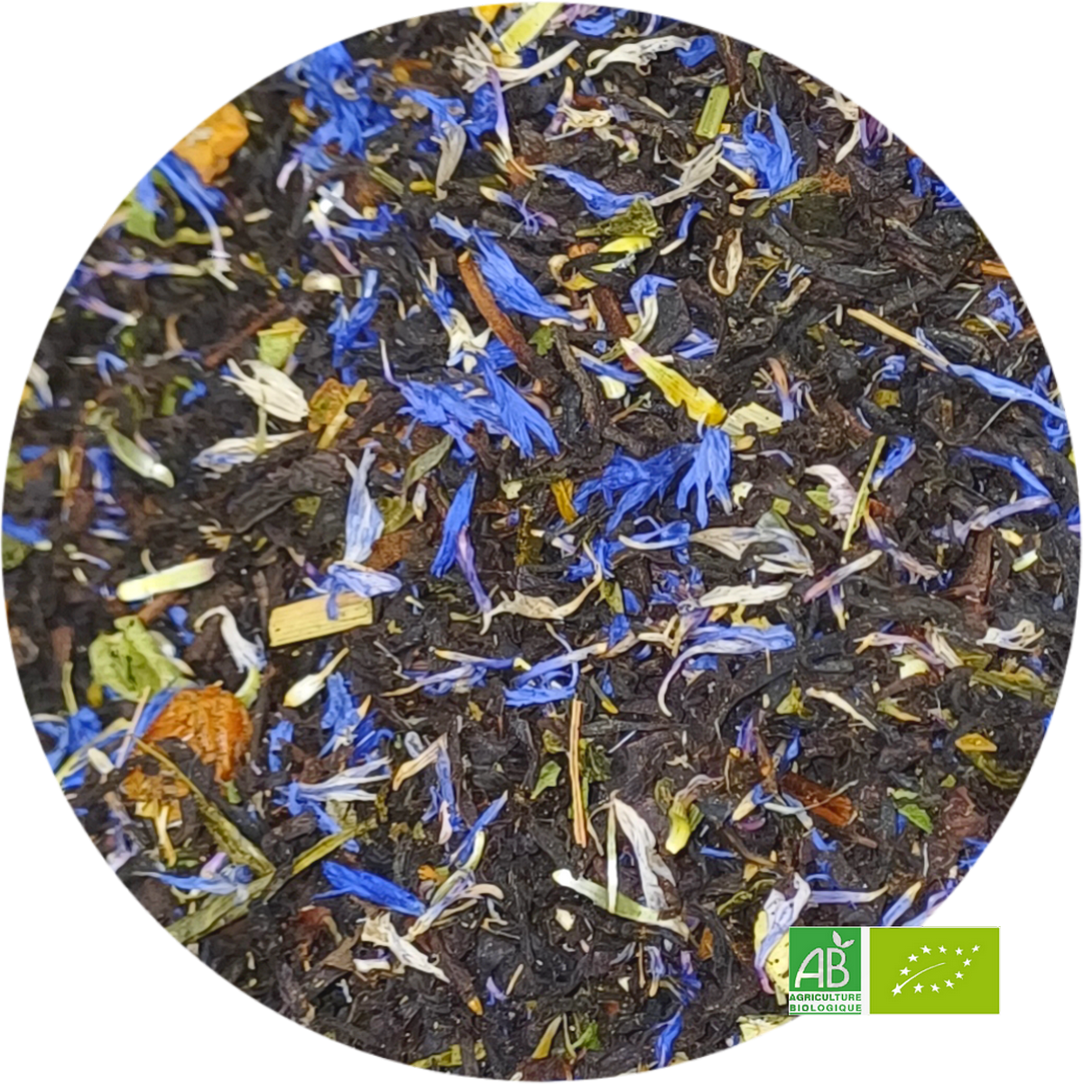 Thé né à Vancouver pour faire un Cappuccino au thé. Un magnifique mélange de thés noirs parfumés à la vanille, bergamote de Calabre, fleur d'oranger, orange et bleuet.