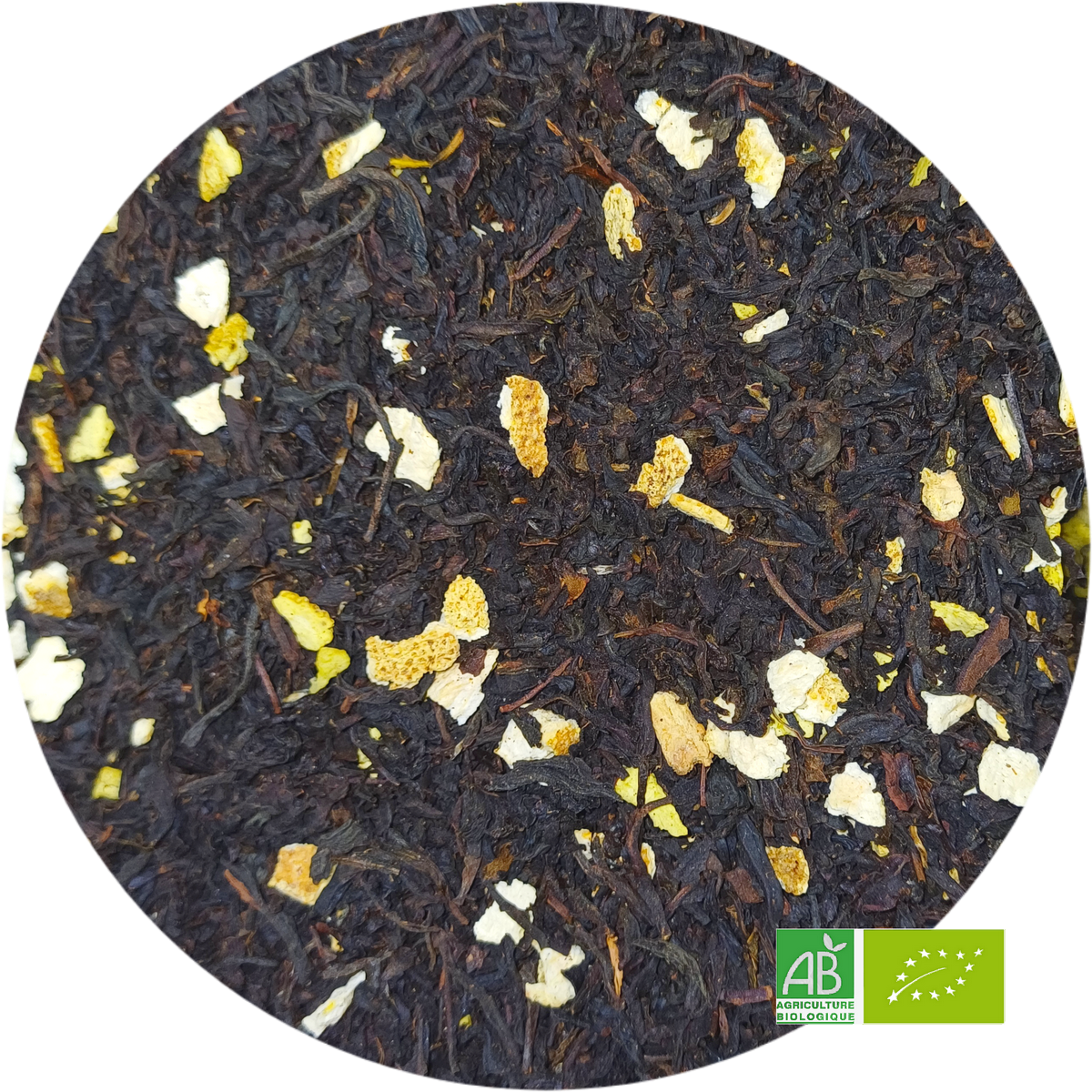 Mélange de thés noirs parfumés à la vanille Bourbon de Madagascar et à l'orange.